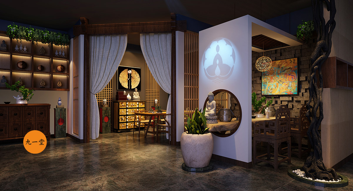 客戶是一個廣東的煤炭老板,資源與圈層當(dāng)然也很豐富,財富積累也是有著更高的要求,圈層朋友精神需求也是更高,希望有一個自己休憩,交流,暢談的空間,兼顧朋友的聚會,故而有了菩提道養(yǎng)生會館。成都九一堂商業(yè)空間設(shè)計多年的茶藝館設(shè)計經(jīng)驗,能夠很清晰洞察客戶需求和商業(yè)空間應(yīng)該注入的文化故事,經(jīng)與甲方多次交流,選址成都。九一堂商業(yè)空間設(shè)計空間布局以“菩提道”之核心精神為本,強調(diào)形與意的高度融合。“天圓地方”的水景為整個空間布局的視覺中心與焦點,一切動線的設(shè)置以它而展開。中心配以碩大的菩提樹,周圍輔以圍坐,水中有景,景中有調(diào),好似悟道情景的再現(xiàn)。此刻慢慢溢出的水流聲,琴聲,論道的談笑聲,在“菩提道”得以升華和共鳴。這是禪宗的最高境界!放下!自在!茶藝館設(shè)計不光要把文化植入與落地,更重要的是設(shè)置消費體驗與裝置, 讓整個品牌的精神價值得以輸出.
