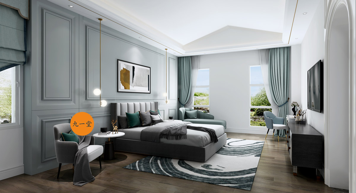 設計理念:本案以簡約的美式風格為主,用目前流行的輕奢風格混搭家具,體現主人的品味,餐桌以條形桌分餐的就餐習慣來滿足客戶長期生活在國外的生活習慣。整個空間干凈,休閑、雅致,浪漫。