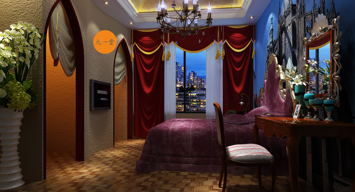西域風(fēng)情主題酒店位于成都犀浦,是三層臨街獨棟商業(yè)樓,九一堂設(shè)計在整體打造上有比較好的優(yōu)勢。西域風(fēng)情主題酒店的房間風(fēng)格是以世界各地有名的國家為主線展開設(shè)計,從中挖掘其本身的建筑風(fēng)格和裝飾藝術(shù),以及特定的文化氛圍,來打造當?shù)靥赜械闹黝}酒店設(shè)計。九一堂設(shè)計在創(chuàng)意與構(gòu)思中融入了地中海風(fēng)情、民俗文化、川西文化、情迷北海道、自然風(fēng)情、普羅旺斯、童話故事、愛麗絲夢游仙境等等故事情節(jié),讓顧客在酒店就能感受到異國風(fēng)情。九一堂設(shè)計認為現(xiàn)在的主題酒店就應(yīng)該打造全球化和多元化的酒店設(shè)計理念,取代傳統(tǒng)單一的商務(wù)型酒店模式。讓顧客從酒店中就能獲得新鮮感,增強酒店與用戶之間的交流和體驗。這也是商業(yè)空間設(shè)計靈魂與核心所在.