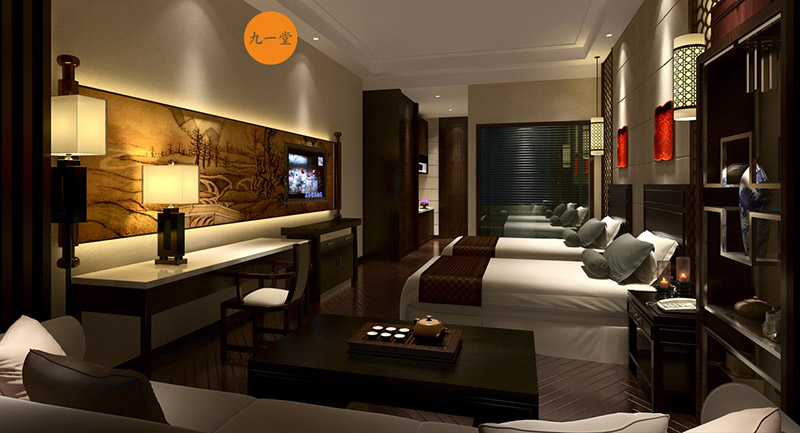 九一堂商業(yè)空間設計通過對市場調研,以漢文化作為漢韻酒店的精神內核,以成都首席漢文化主題酒店的姿態(tài)亮相, 獨對秦磚漢瓦,朗誦唐詩宋詞,沐浴清風明月,何等境界!盛世的漢風文化,感受文人的氣度山河,走在歷史的長廊里。猶如昨日,讓你恍若隔世--古琴、古箏、象棋、圍棋、文房四寶、茶具,青白玉、石刻、瓦當?shù)龋屇惴氯魜淼秸嬲奈囱雽m、長樂宮。九一堂商業(yè)空間設計以漢朝建筑風格及裝飾元素為基調,讓您重溫雄漢文化,體驗空間的尊榮服務和環(huán)境。酒店客房分為未央宮和長樂宮,琴藝房、棋藝房、書畫房、茶藝房等。殿內配有古琴、古箏、象棋、圍棋、文房四寶、茶具等,以漢朝青白玉、石刻、瓦當、服飾作為主要視覺色調,并擷取漢代詩賦文化、繪畫文化、建筑文化、音樂文化、茶藝文化,形成了獨具特色的空間感受。通過對漢文化價值觀梳理、酒店服務體驗建設兩方面入手 將漢文化主題酒店-漢韻酒店形成差異化品牌形象,讓目標客群形成清晰明了的文化認知。